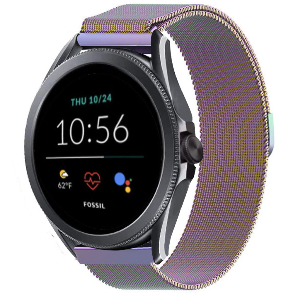 Unsere Fossil Gen 5e - 44mm Milanese Armbänder bestehen aus hochwertigem Edelstahlgeflecht, das sowohl Langlebigkeit als auch eine elegante Optik bietet. Das fein gewebte Design garantiert Beständigkeit und bleibt dabei leicht, was ein müheloses Tragen über den ganzen Tag ermöglicht. Wählen Sie zwischen klassischem Schwarz, edlem Roségold oder dem farbenfrohen Regenbogen-Finish, um ein Armband zu finden, das Ihren Stil perfekt zum Ausdruck bringt.