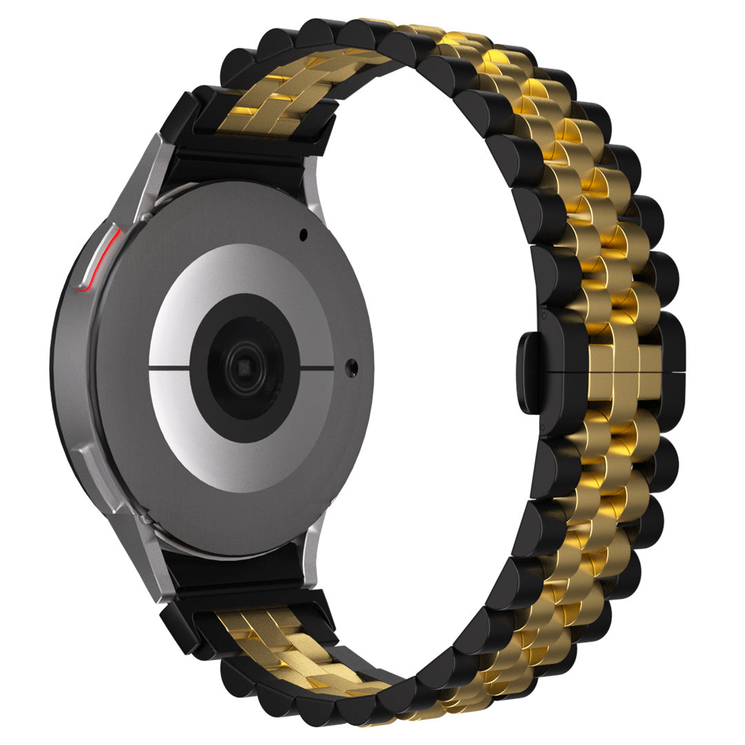 Verleihen Sie Ihrer Samsung Galaxy Watch 4 Classic 46 mm mit einem der Stahlbänder einen eleganten Look. Mit unserer großen Auswahl an Stahlbändern haben Sie die Möglichkeit, das Smartwatch-Band zu wählen, das zu Ihrem eigenen Stil passt. So können Sie beispielsweise ein Galaxy Watch 4 Classic Jubiläums-Stahlarmband in Silber, Gold oder einer Kombination aus Schwarz und Gold wählen. Neben dem Jubilee-Stahlband haben wir auch Bänder mit Drachen- oder Präsidentenmuster. Die Riemen sind ebenfalls aus Edelstahl (Edelstahl) und eignen sich für formelle und legere Anlässe. Gut für das Nachtleben, aber auch für Geschäftstermine.