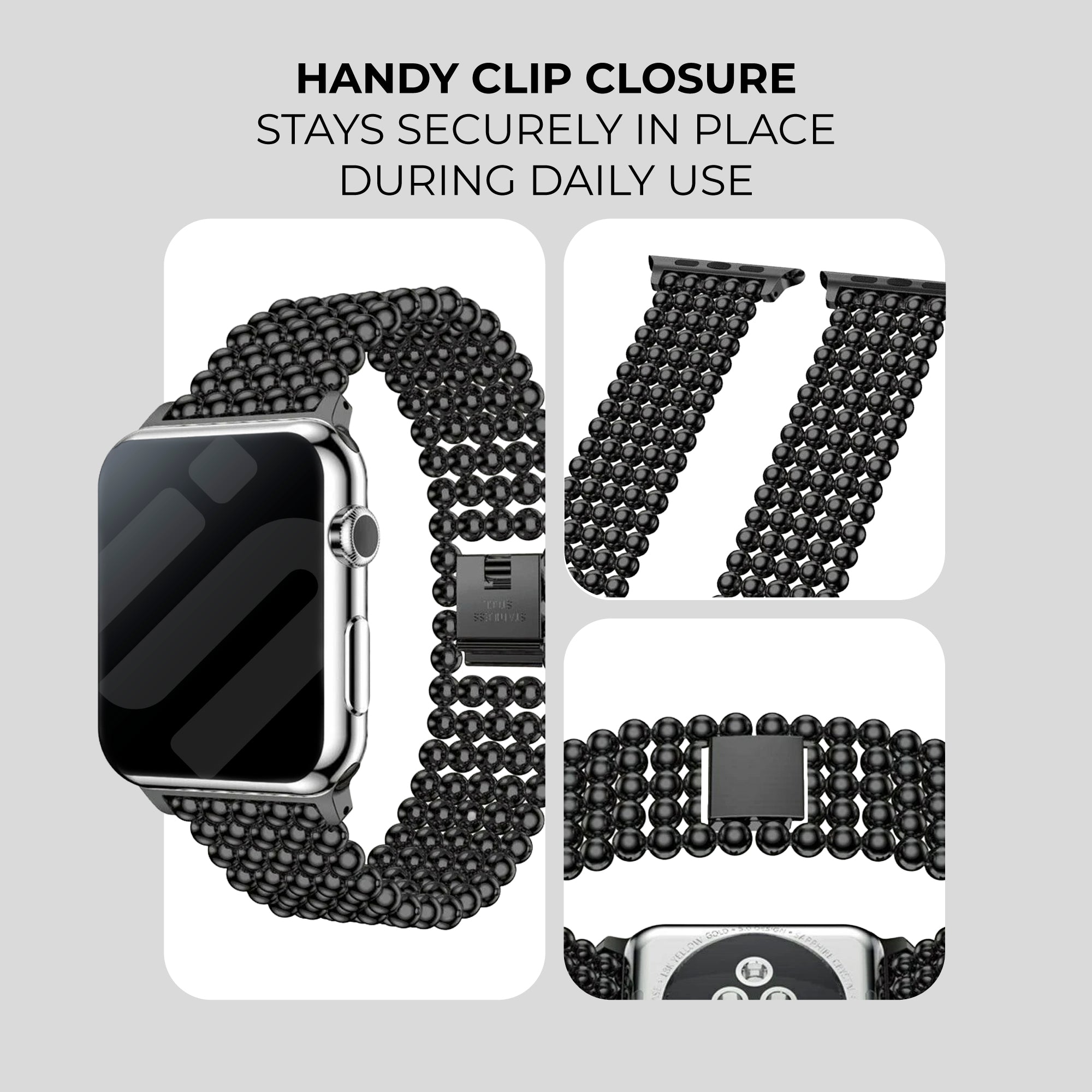 Apple Watch Beaded Steel Strap (Black)