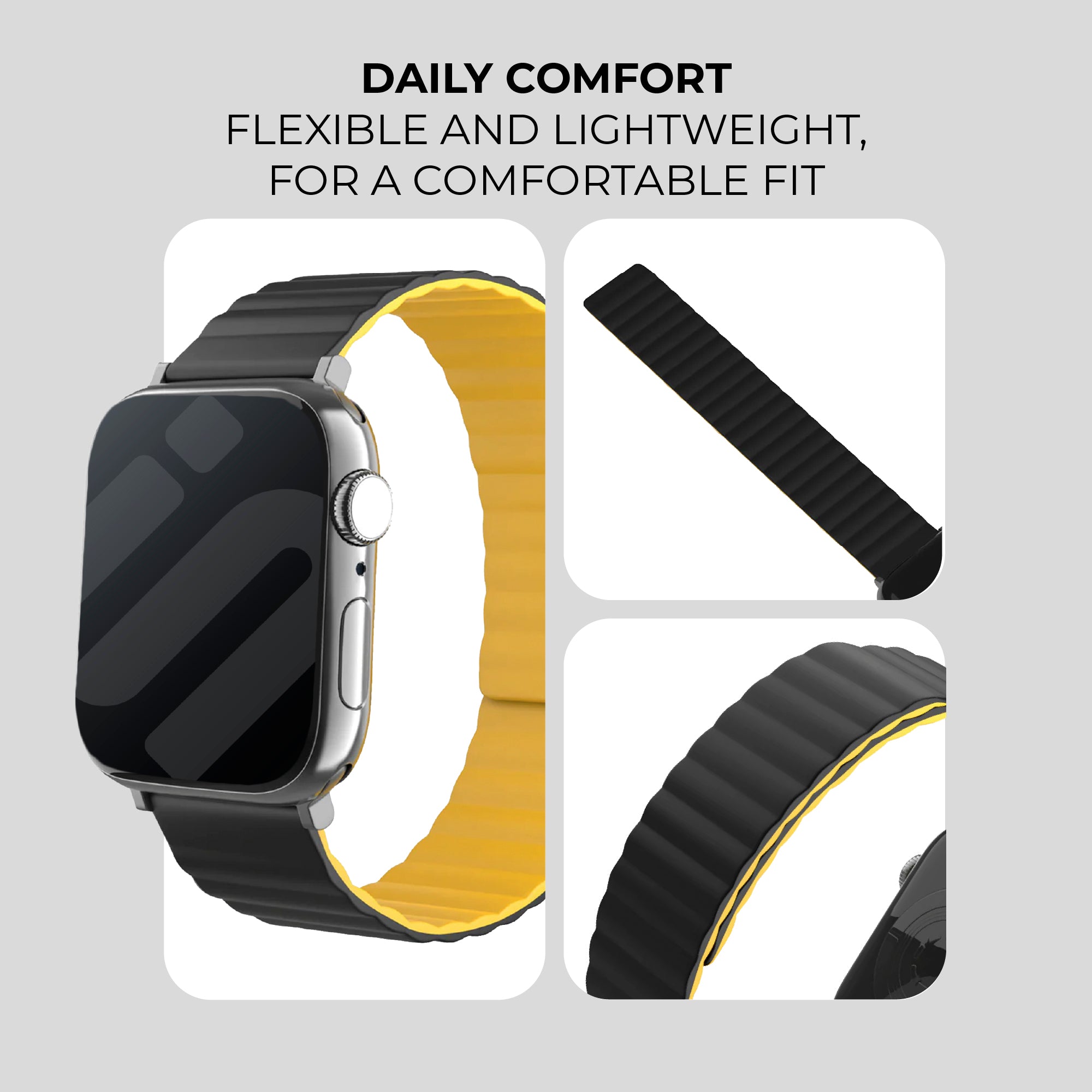 Apple Watch Magnetic Silicone Strap (Black/Yellow)