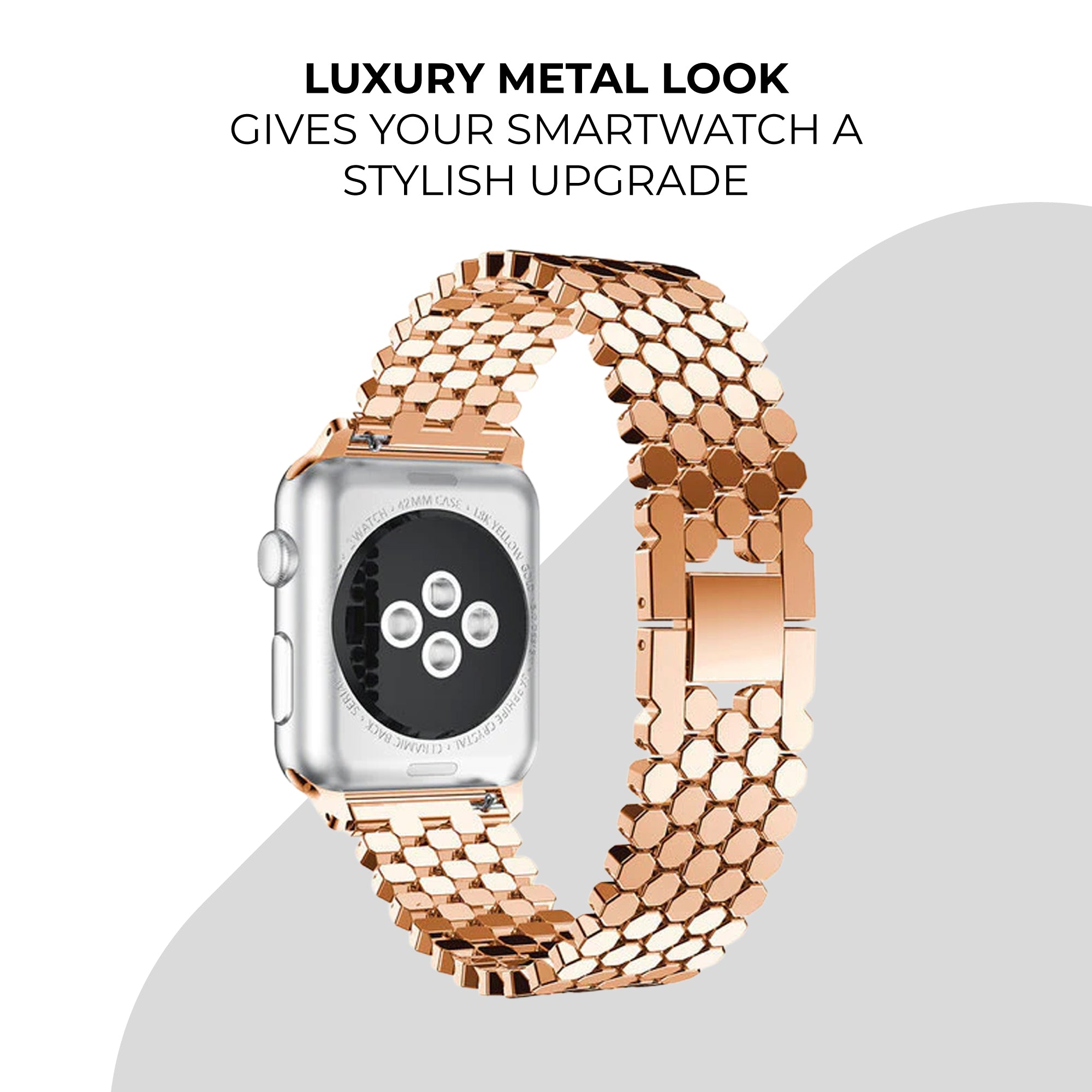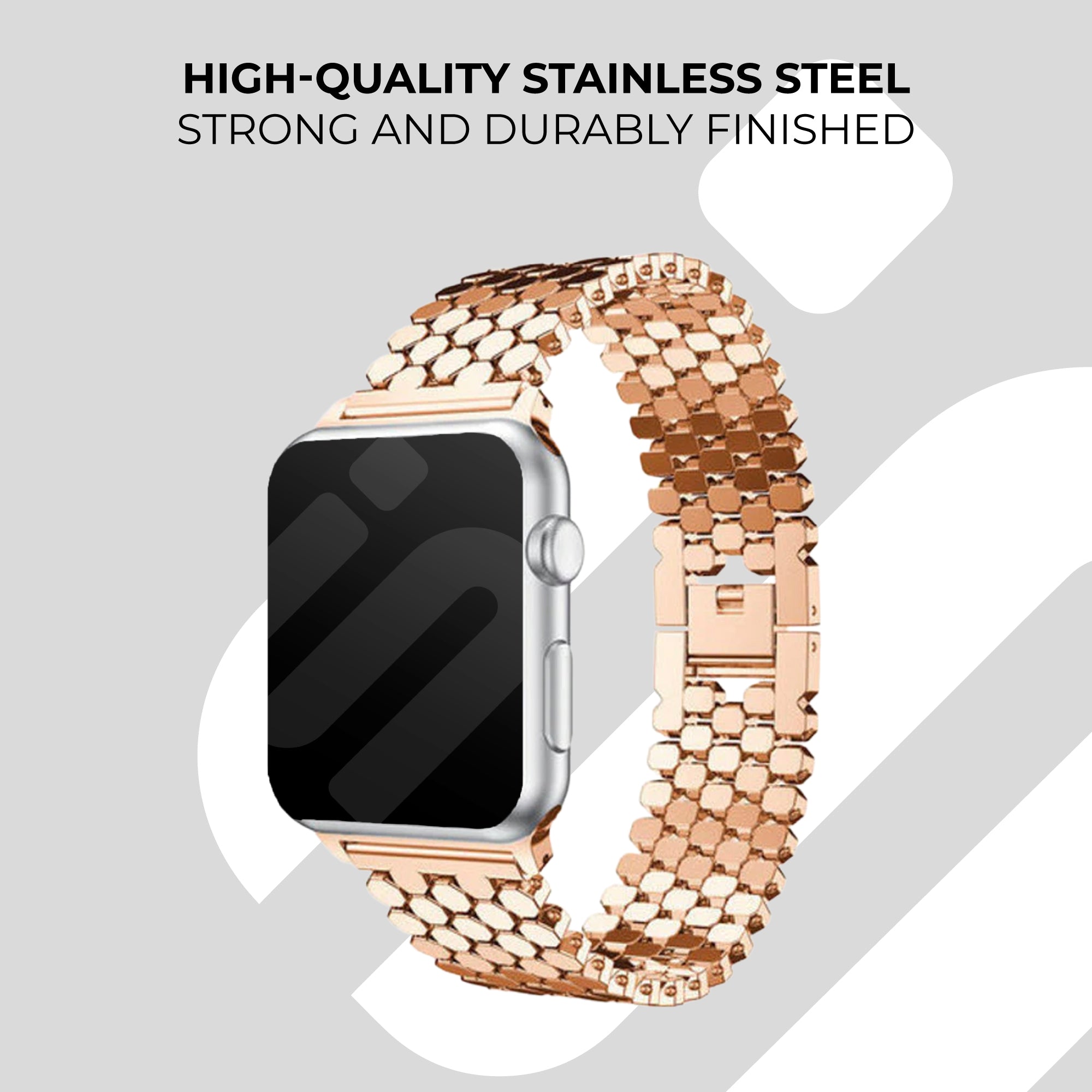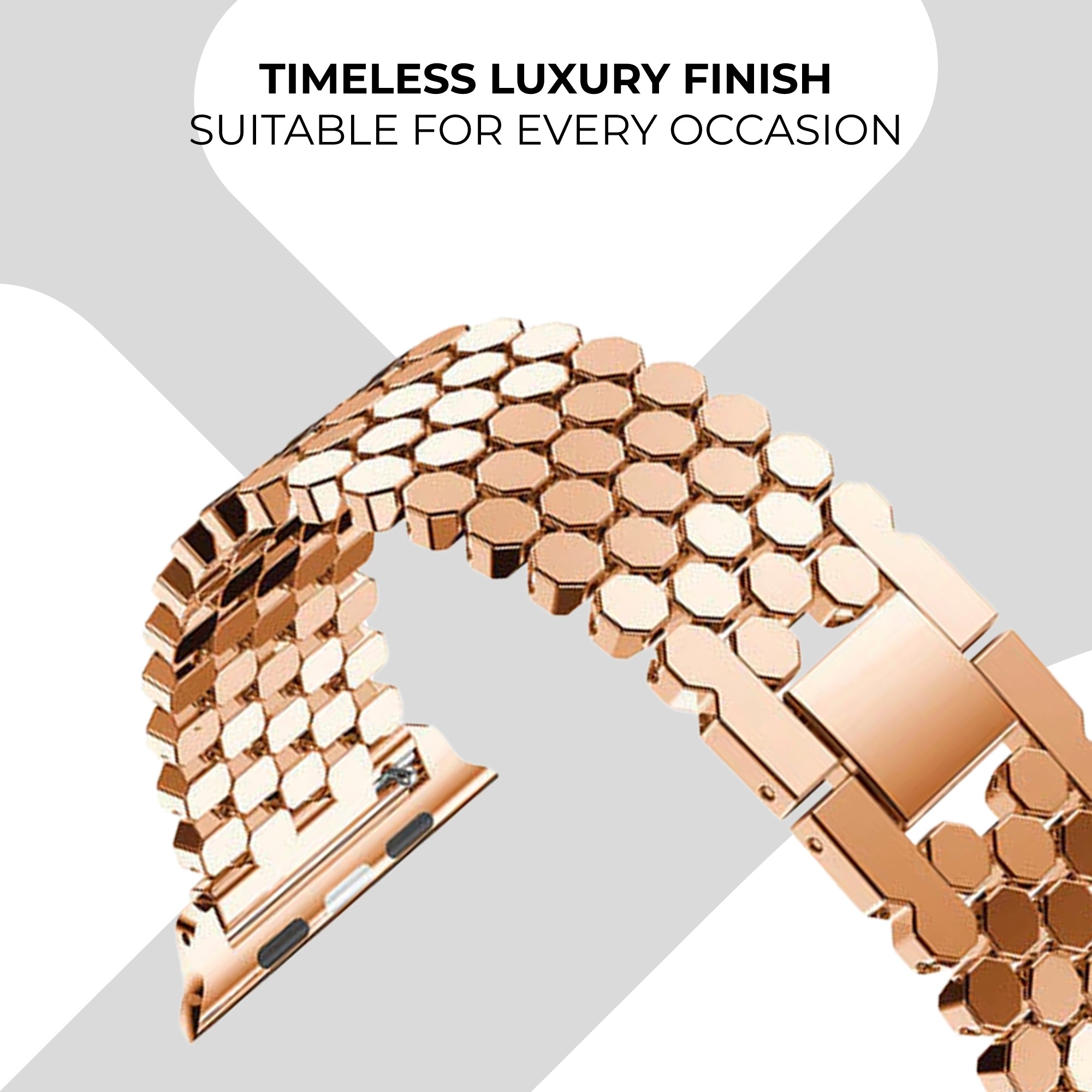 A rose gold steel hexagons strap for the Apple Watch