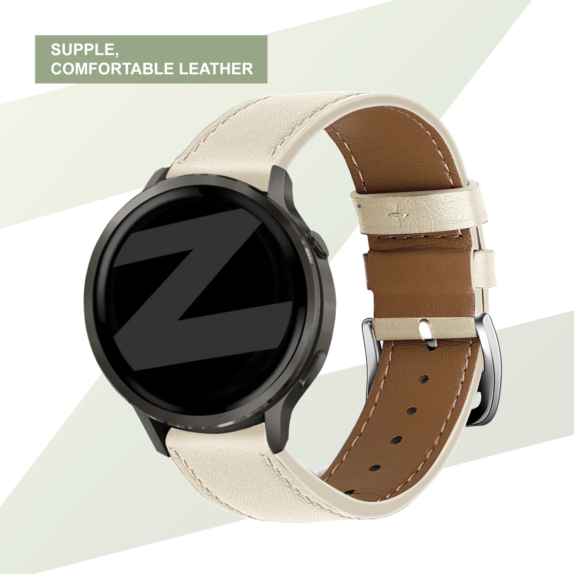 Bandz Garmin Approach S42 Leather Strap 'Deluxe' (Beige)