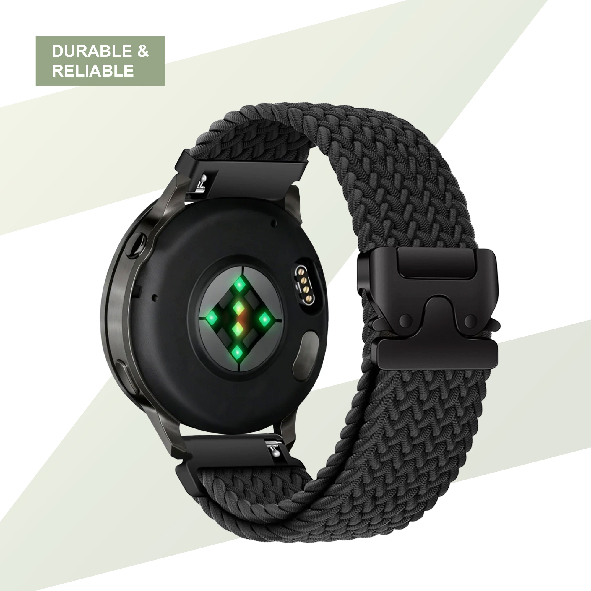 The Bandz braided strap, designed specifically for the Garmin Approach S50, gives a sleek look to your timepiece. The soft nylon material has a high-quality finish and always feels very comfortable. The Garmin Approach S50 nylon band has a modern parachute closure that allows you to always adjust the band exactly to your wrist size.