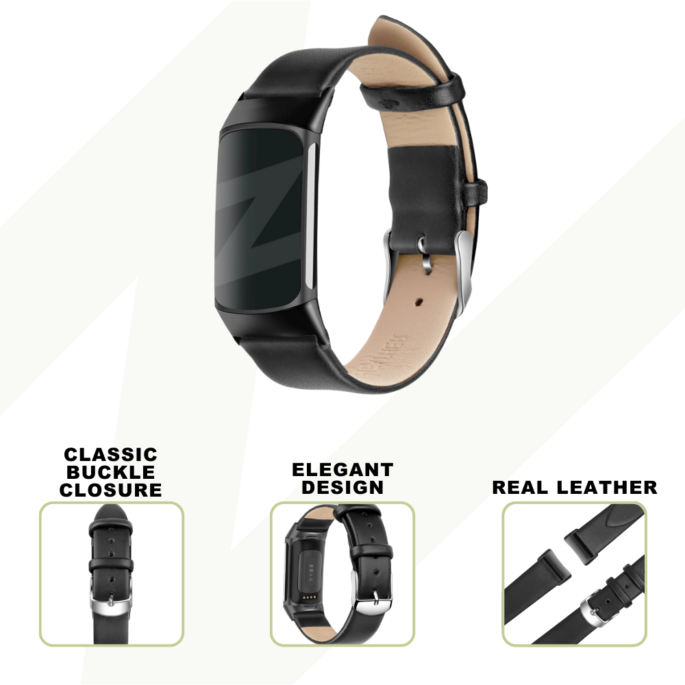 Bandz Fitbit Charge 5 Genuine Leather Strap (Black)