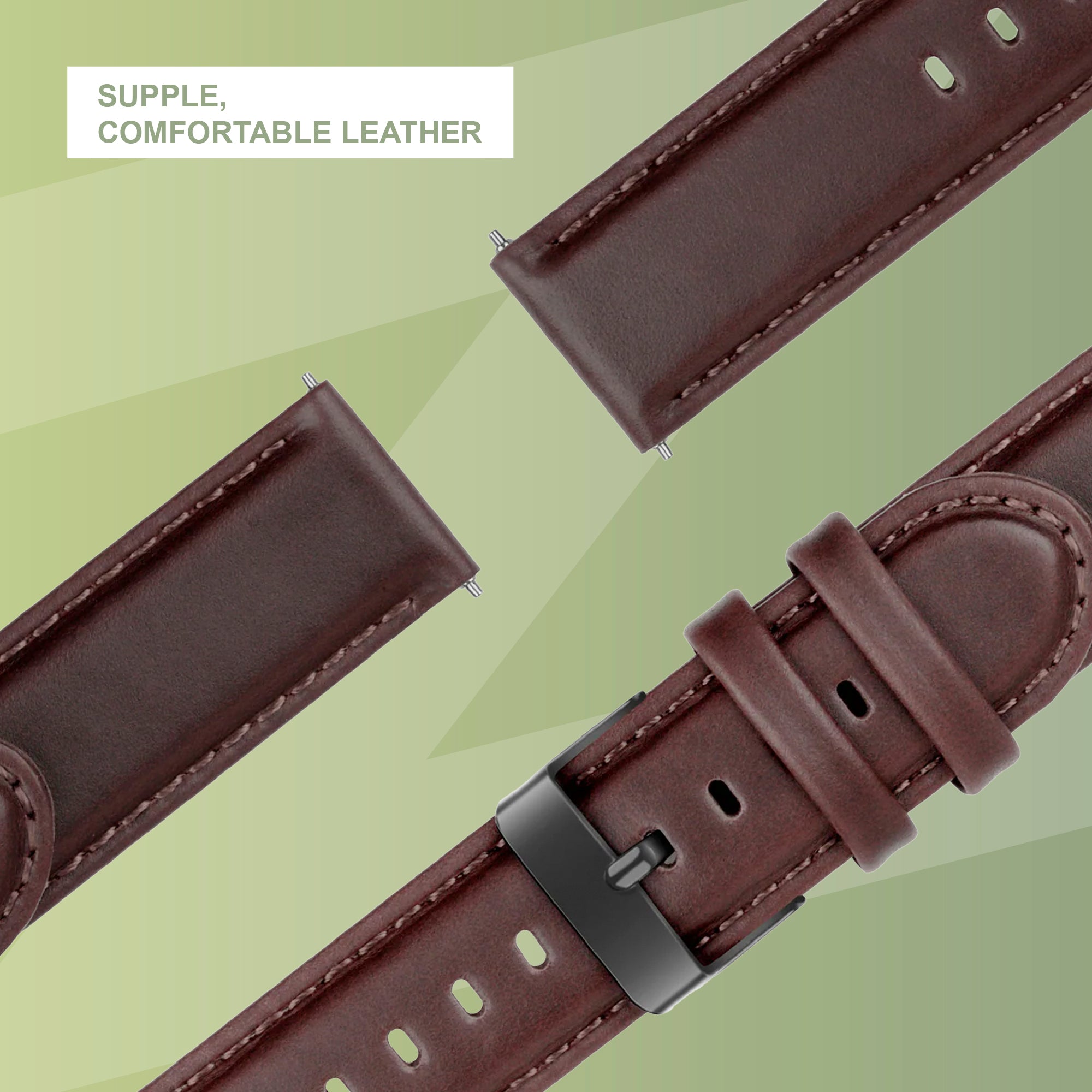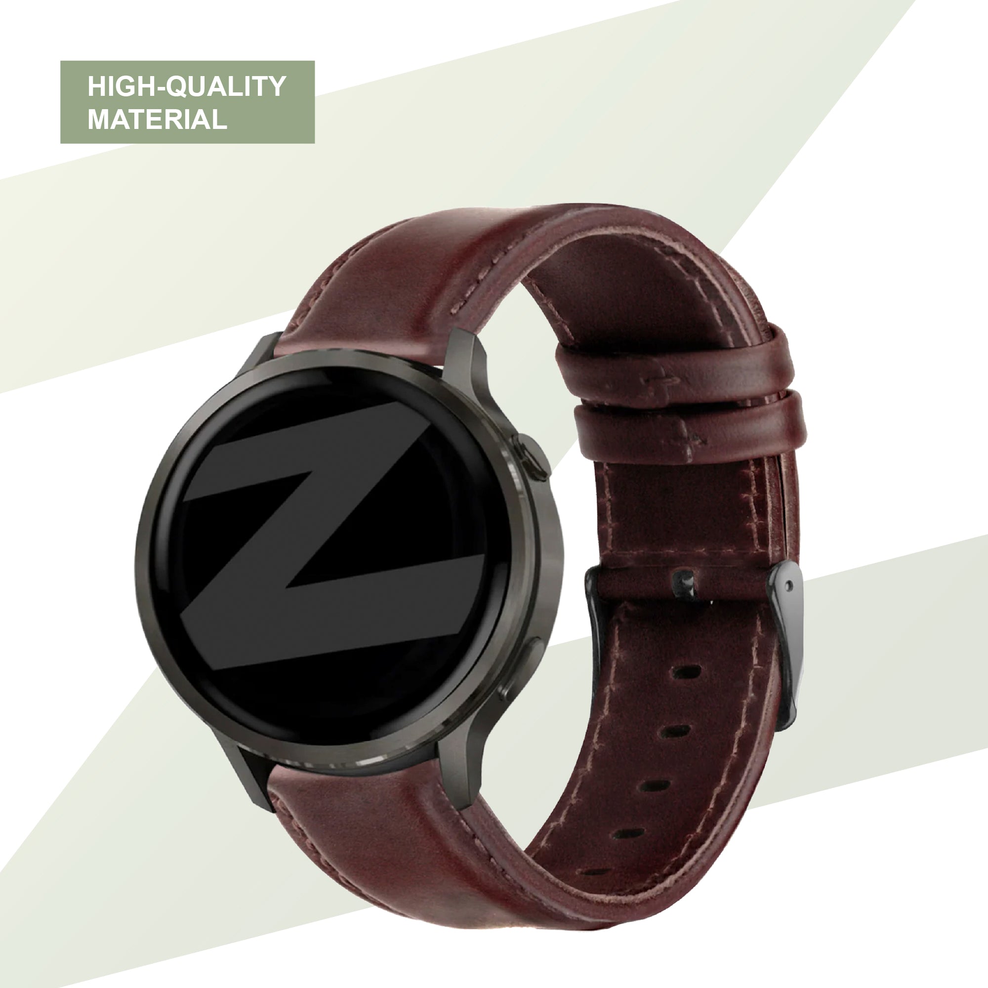 Bandz Garmin Forerunner 265 Leather Strap 'Classic' (Dark Brown)