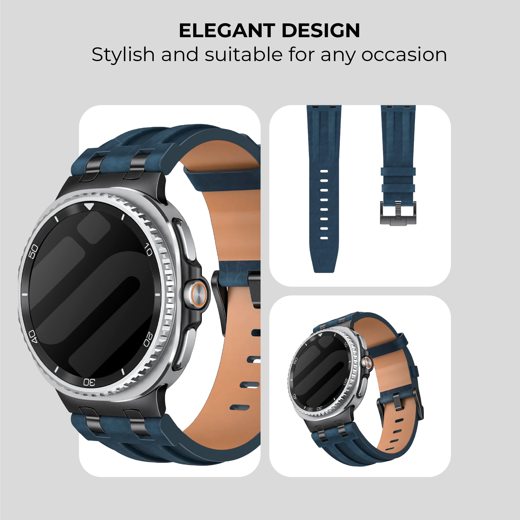 Samsung Galaxy Watch 8 - 44mm Solid Leather Strap (Dark Blue)