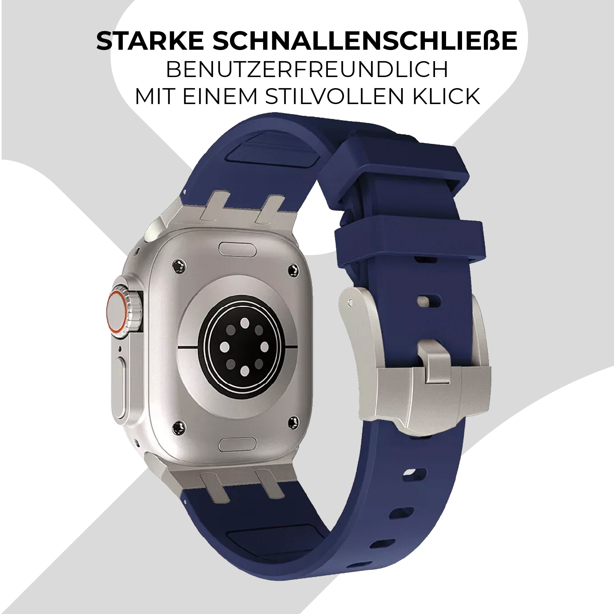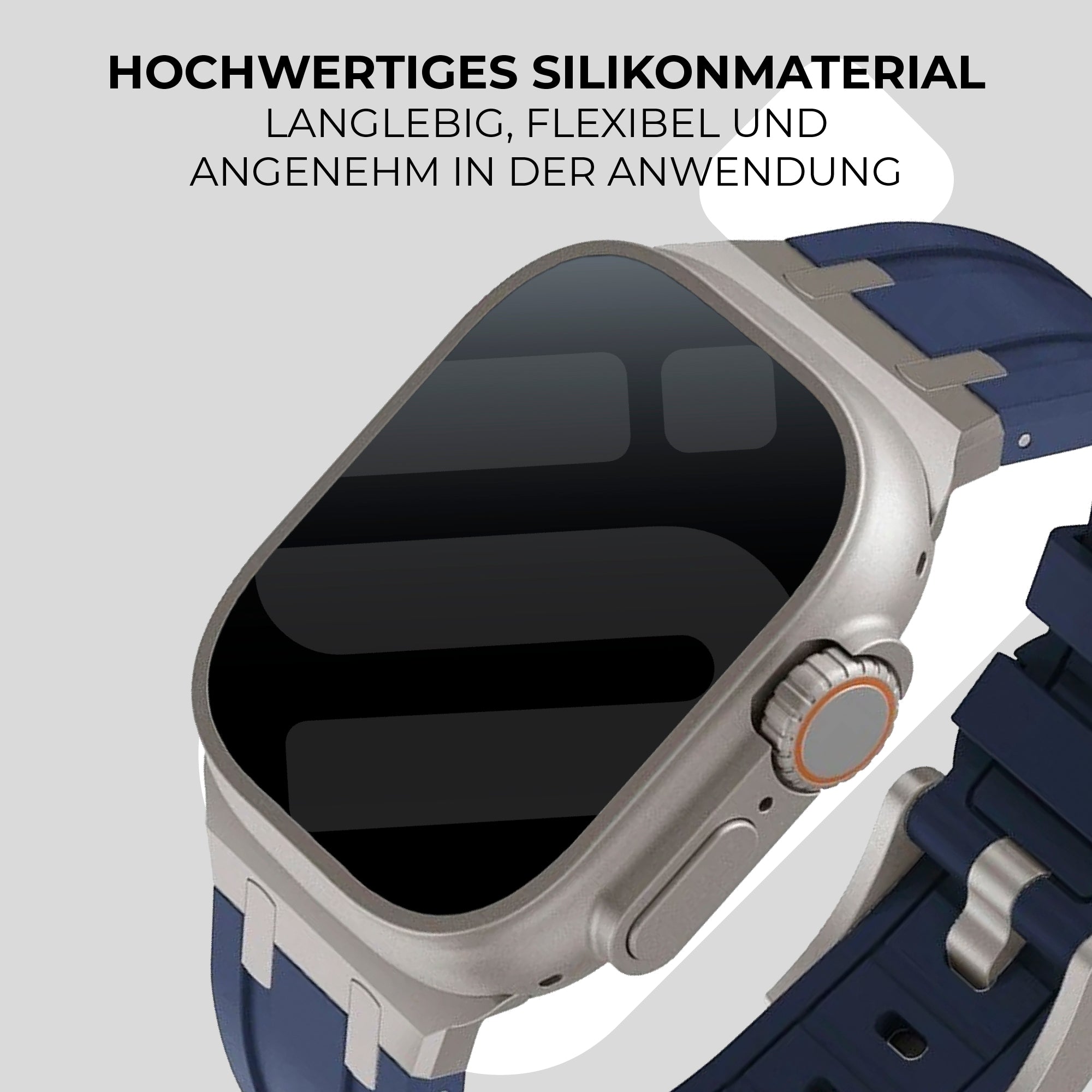 Apple Watch Luxus Liquid Silikonarmband (Blau mit Titanium)