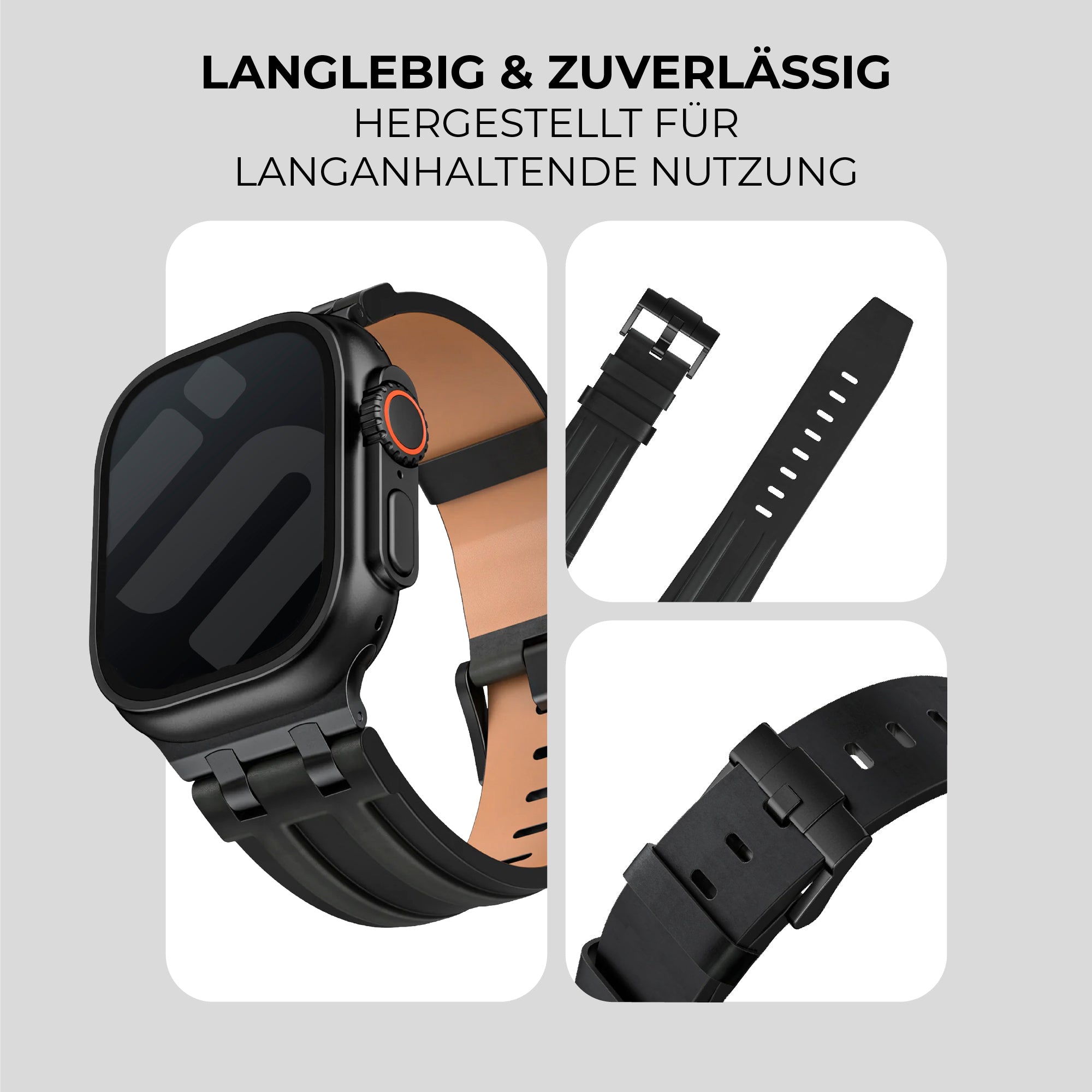 Apple Watch Robustes Lederarmband (Schwarz)
