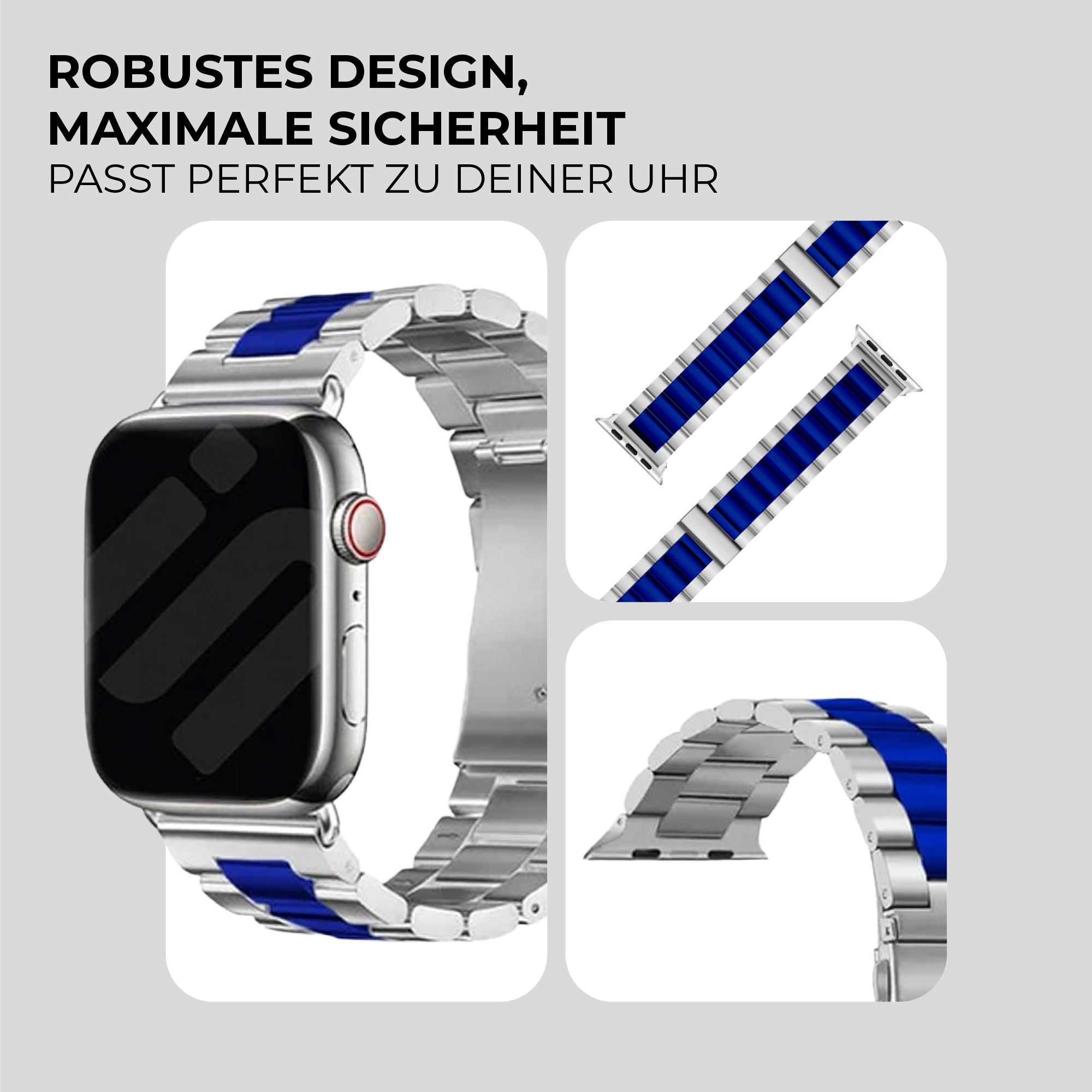 Apple Watch Stahlarmband (Silber/Blau)