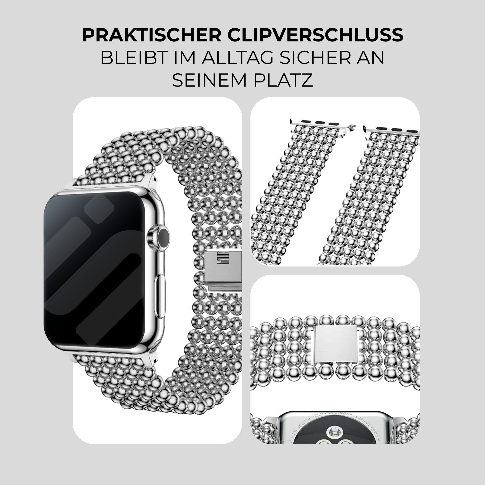 Apple Watch Stahlperlenarmband (Silber)