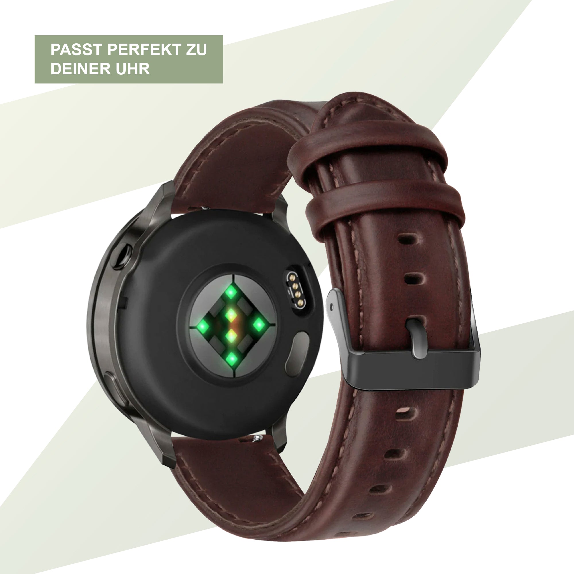Bandz Garmin Forerunner 265 Lederarmband 'Classic' (Dunkel Braun)