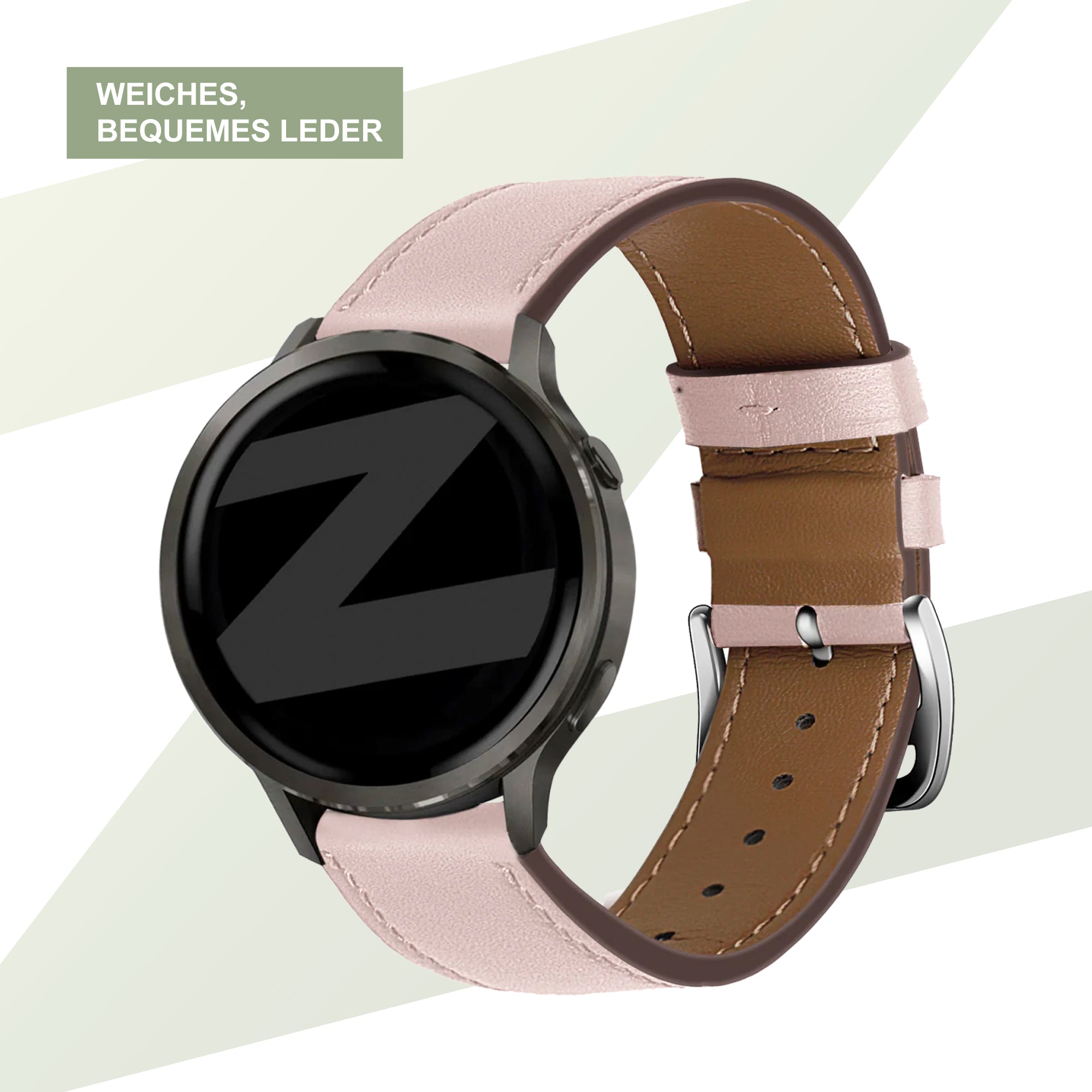 Bandz Garmin Forerunner 55 Lederarmband 'Deluxe' (Rosa)