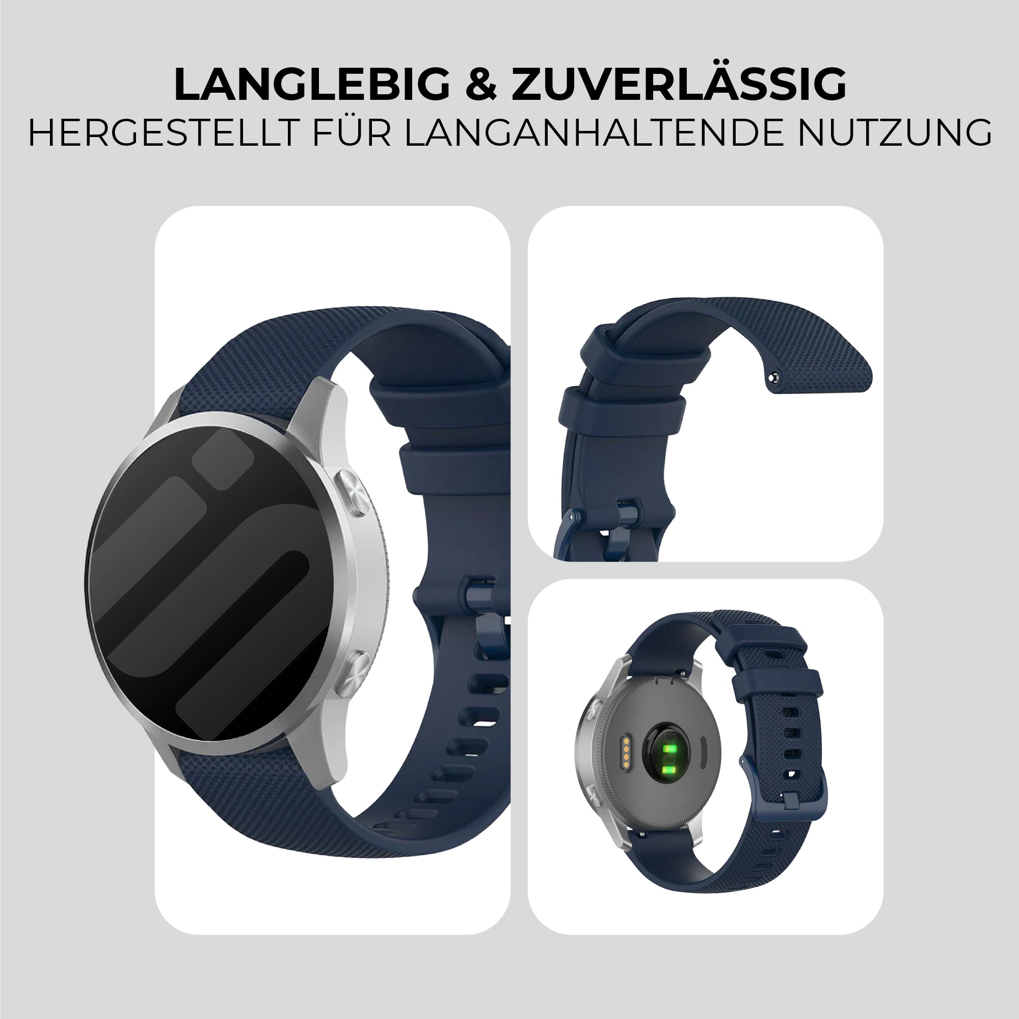Silikon-Smartwatch-Armbänder sind sehr langlebig und für ihre lange Lebensdauer bekannt. Starke Sonneneinstrahlung oder chlorhaltiges Wasser können jedoch die Lebensdauer eines Silikonarmbands verkürzen.