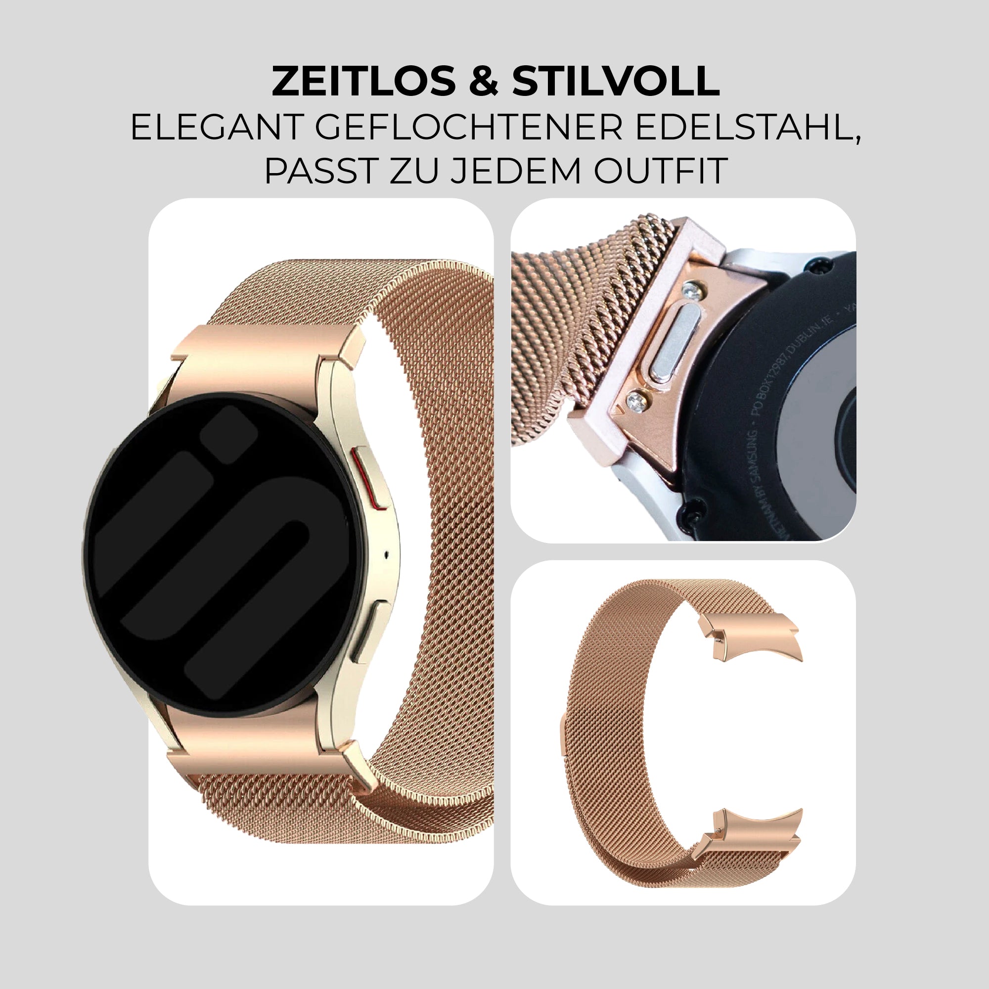 Samsung Galaxy Watch 4 Classic 42mm 'One push' Milanese-Armband (Rosegold)