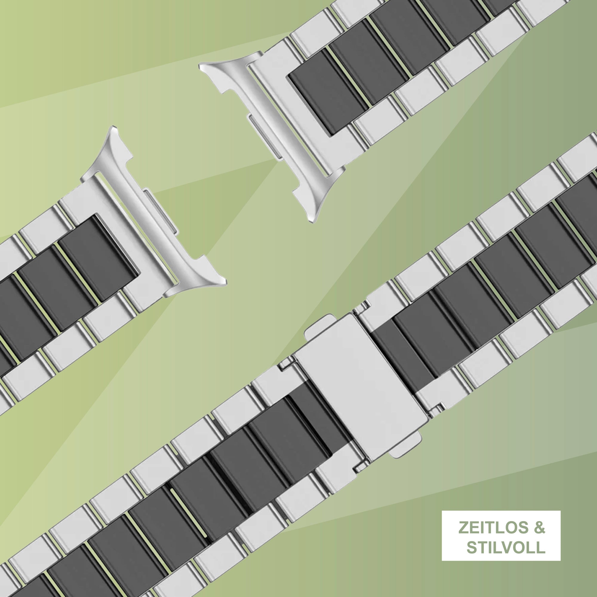 Bandz Samsung Galaxy Watch 8 - 40mm Stahlarmband 'Classic' (Silber/Schwarz)
