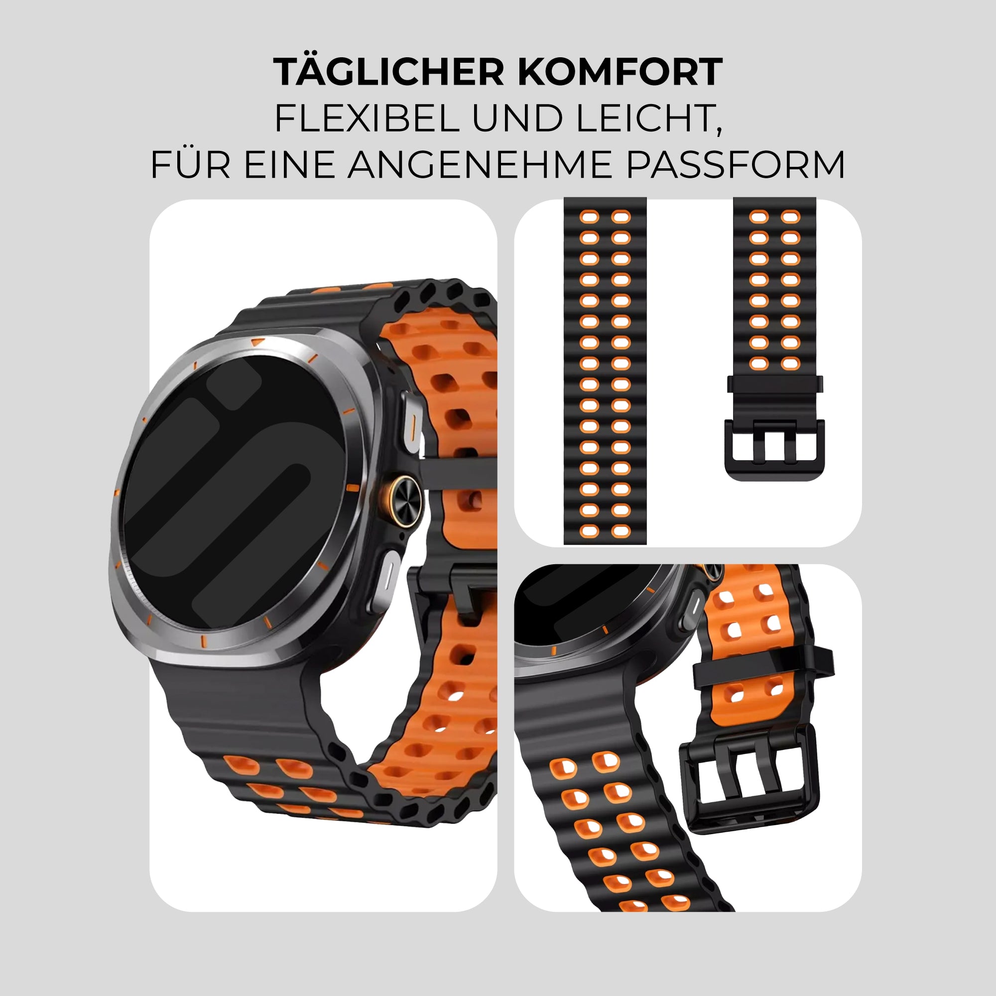 Samsung Galaxy Watch Ultra Wave Silikonarmband (Schwarz/Orange)