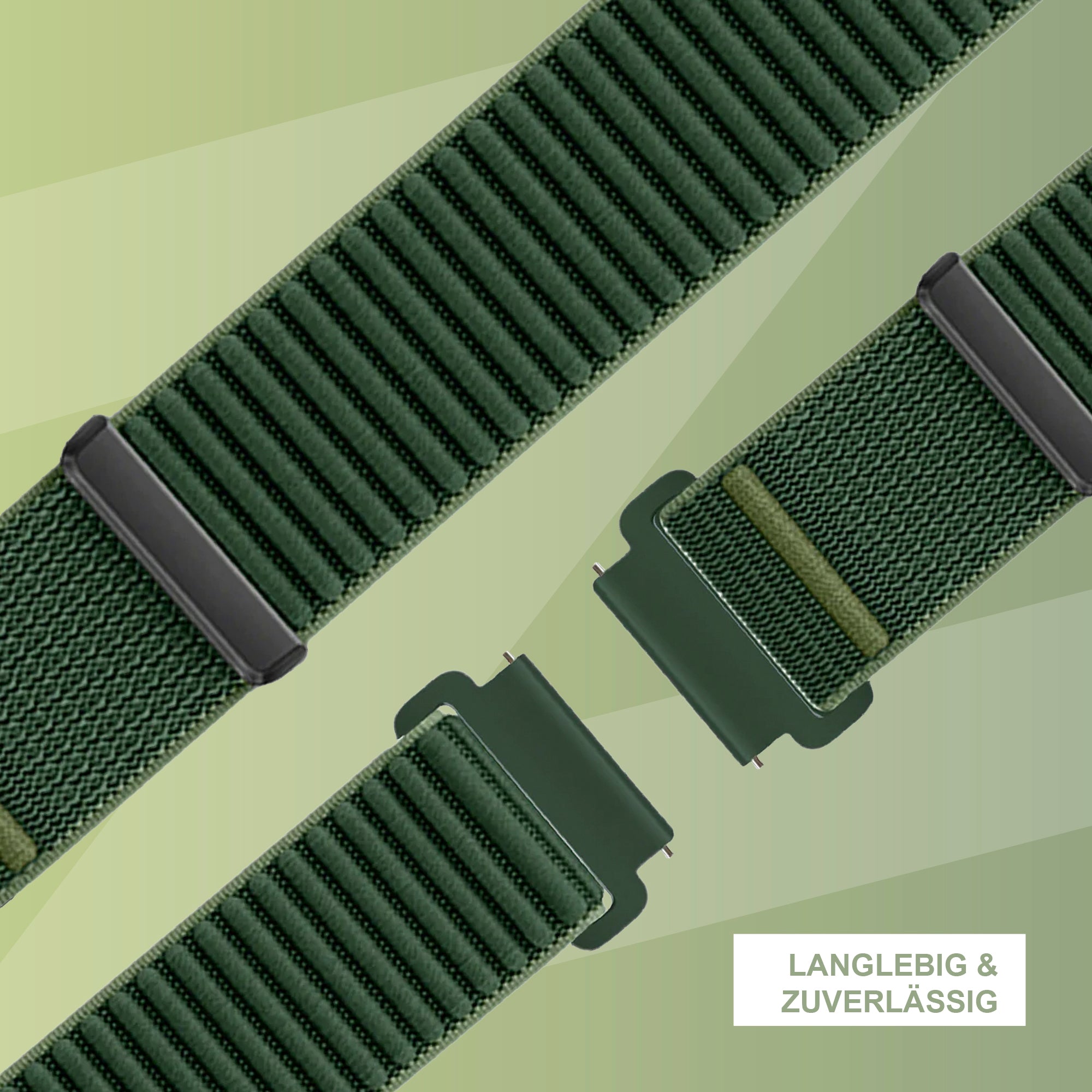 Nylon ist sehr langlebig, die Lebensdauer des Armbands hängt jedoch von der Nutzung ab. Gelegentliches Waschen in warmem Wasser und anschließendes Lufttrocknen hält das Armband frisch und verlängert seine Lebensdauer.