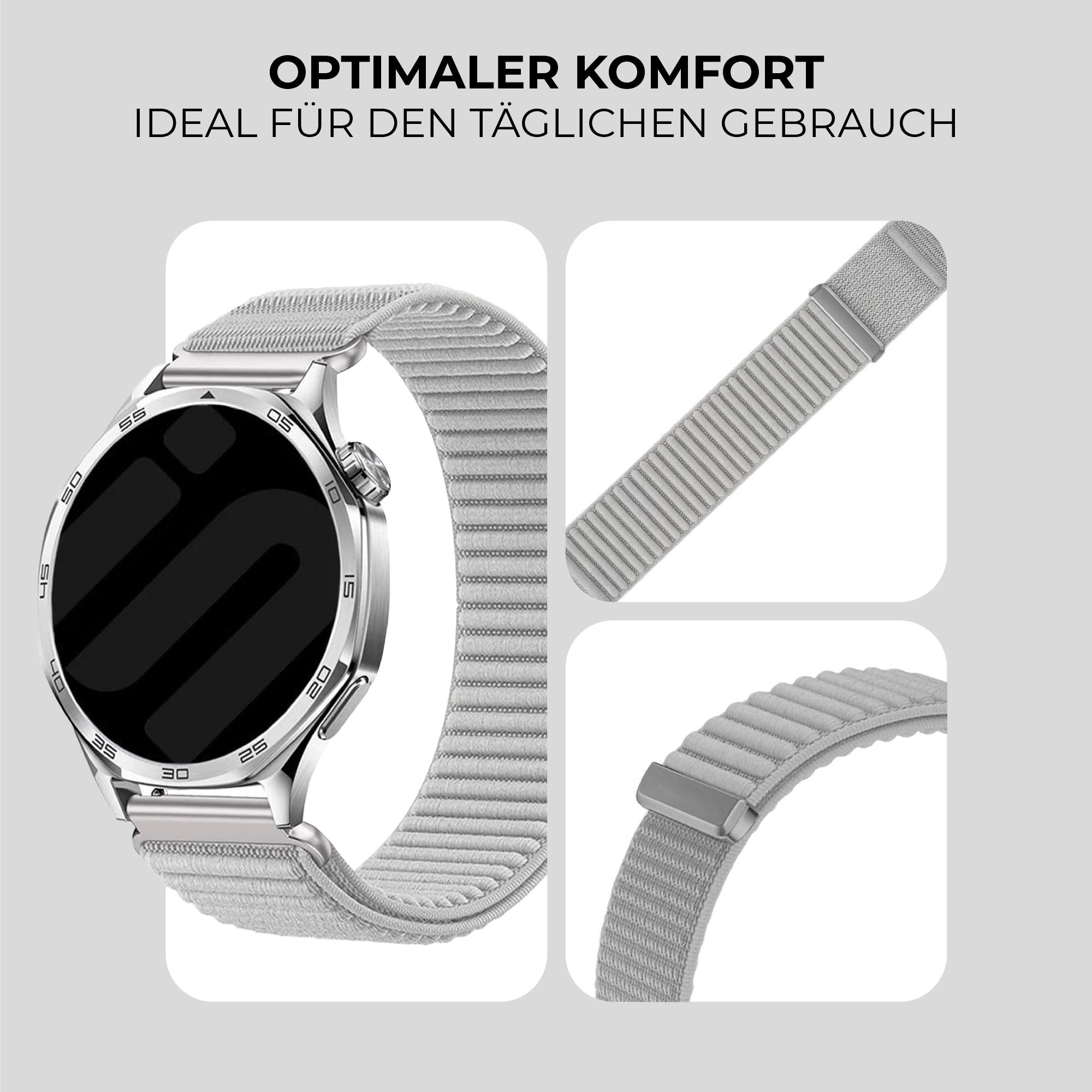 Samsung Galaxy Watch 4 Classic 42mm Wave Nylonarmband (Hell Grau)