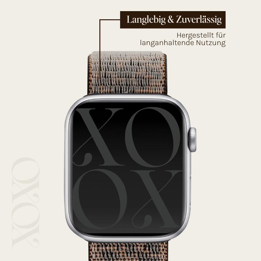 xoxo Wildhearts Apple Watch Nylonarmband (Schwarz Leopard)